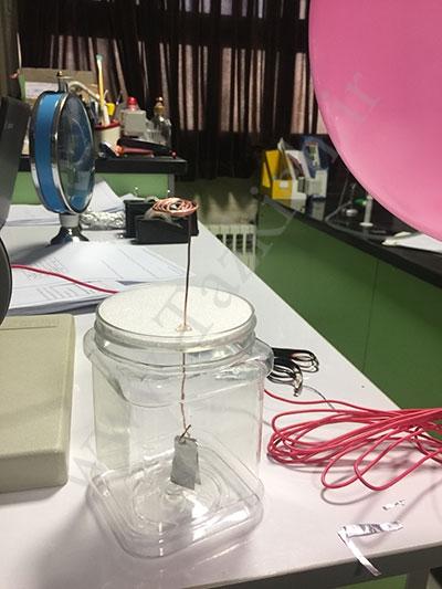 .دانش آموزان پایه هشتم در آزمایشگاه فیزیک با اجزای مختلف دستگاه الکتروسکوپ در فصل الکتریسیته آشنا شدند. سپس برای آشنایی بیشتر با این وسیله با استفاده از سیم و کاغذ آلومینیوم یک الکتروسکوپ ساده ساخته شد و هر گروه با انجام آزمایش های مختلف تأثیر بار همنام و ناهمنام را مشاهده کردند و با کاربردهای مختلف الکتروسکوپ در شناسایی بار اجسام آشنا شدند. در انتها دستگاه مولد واندوگراف به دانش آموزان معرفی و با استفاده از آن یک آزمایش انجام و سپس با استفاده از این دستگاه روش ساخت یک موتور الکترواستاتیک ساده به دانش آموزان نشان داده شد. [gallery ids="2765,2766,2767,2768,2770"]