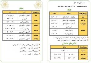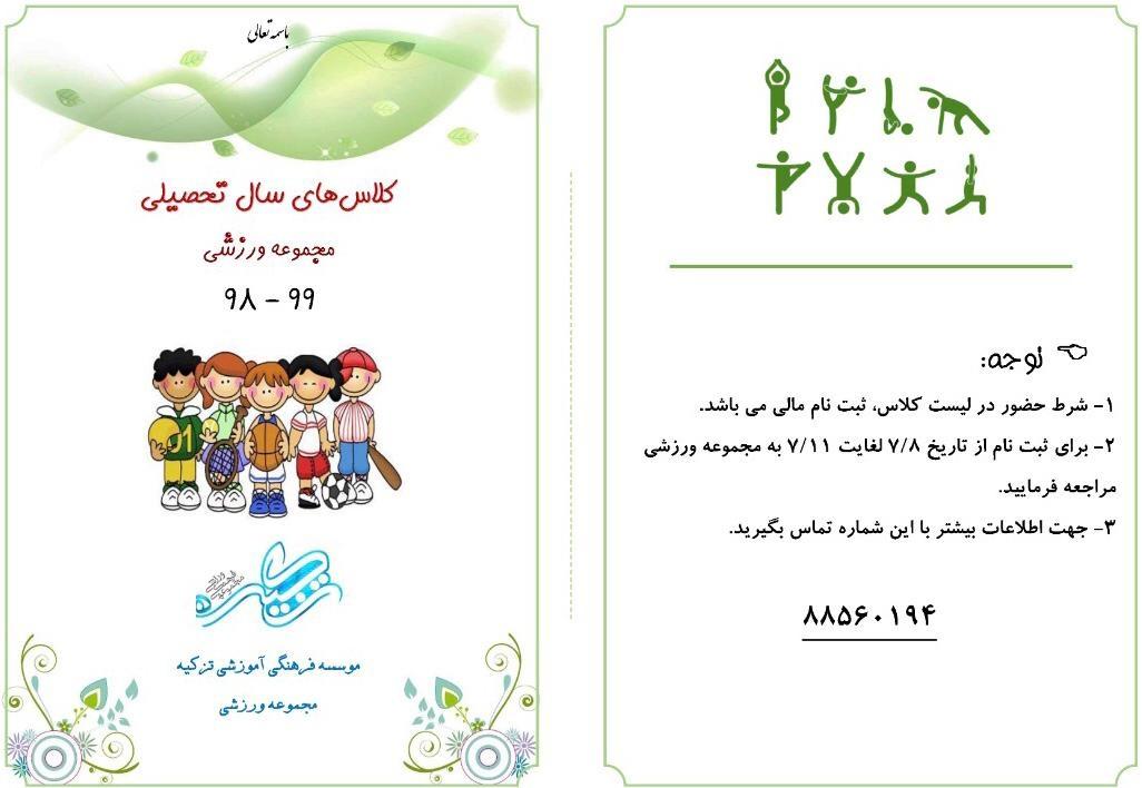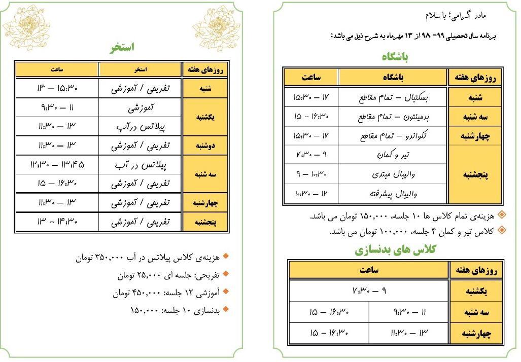 برنامه کلاس های مجموعه ورزشی ۹۹-۹۸