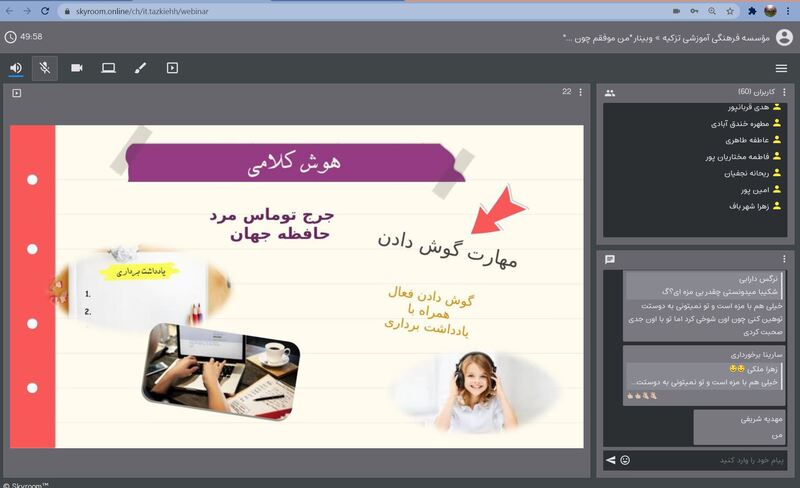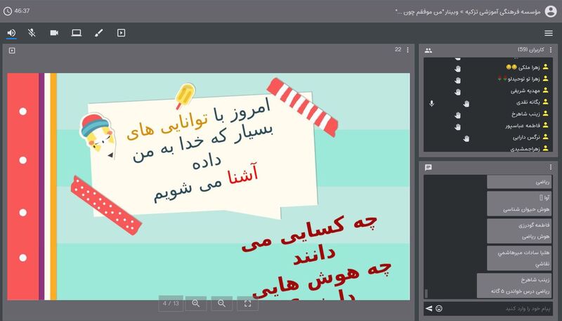 برگزاری وبینار من موفق می شوم برای پایه های سوم تا پنجم در دو روز متفاوتاولین قسمت از مجموعه وبینارهای من من موفق می شوم با موضوع هوش های چندگانه با محوریت هوش کلامی برای پایه های سوم تا پنجم دبستان در روزهای متفاوت برگزار شد.