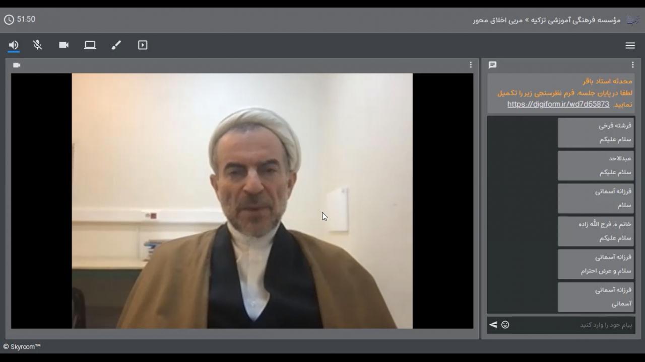 در این جلسه، حجه الاسلام کرباسچیان به صورت کلی، در مورد نکات اخلاقی که باید یک مربی در ارتباط با متربی به آن توجه کند، اشاره نمودند.در این جلسه که در تاریخ 17 دی99 و ساعت 16:30 تا 17:15 برگزار شد، حجه الاسلام کرباسچیان به صورت کلی، در مورد نکات اخلاقی که باید یک مربی در ارتباط با متربی به آن توجه کند، اشاره نمودند.