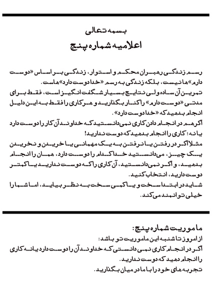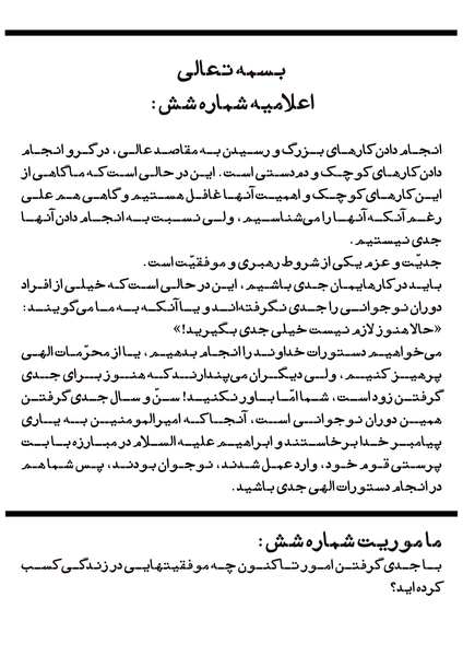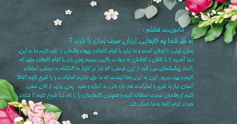 هر روز ماموریت درج شده در اعلامیه را به صورت عکس، دست نوشته و فیلم برای تیم فرهنگی ارسال می کردند و در کانال متوسطه اول به نمایش گذاشته میشد
