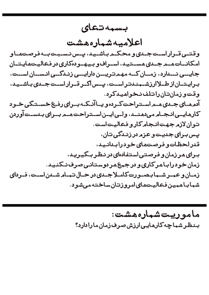به این صورت که تیم فرهنگی اعلامیه های هر روز را که یک ماموریت را ببیان می کرد در مدرسه پخش می کرد و انقلابیون باید این اعلامیه ها را پیدا و به ماموریت ها عمل می کردند