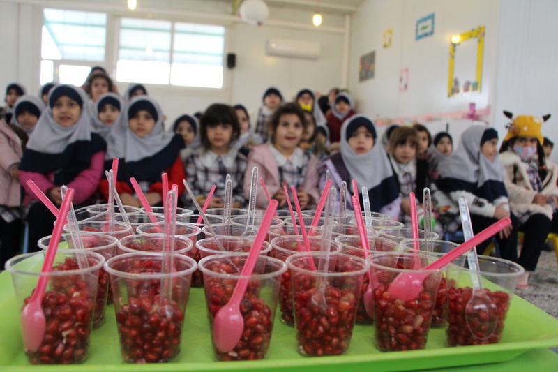شب یلدا اومده ننه سرما اومدهبا ورود فصل زمستان، پیش دبستان مهمان ویژه ای داشت. ننه سرما با موی سفید و پیراهن گلدارش با عینکی زیبا در حالیکه یک سبد پر از دانه های مرواریدی برف در دست داشت؛ دختران گلمان را شگفت زده کرد، از فرزندانش و شروع برف و سرما گفت و در آخر برای عزیزانمان، انار به ارمغان آورد.