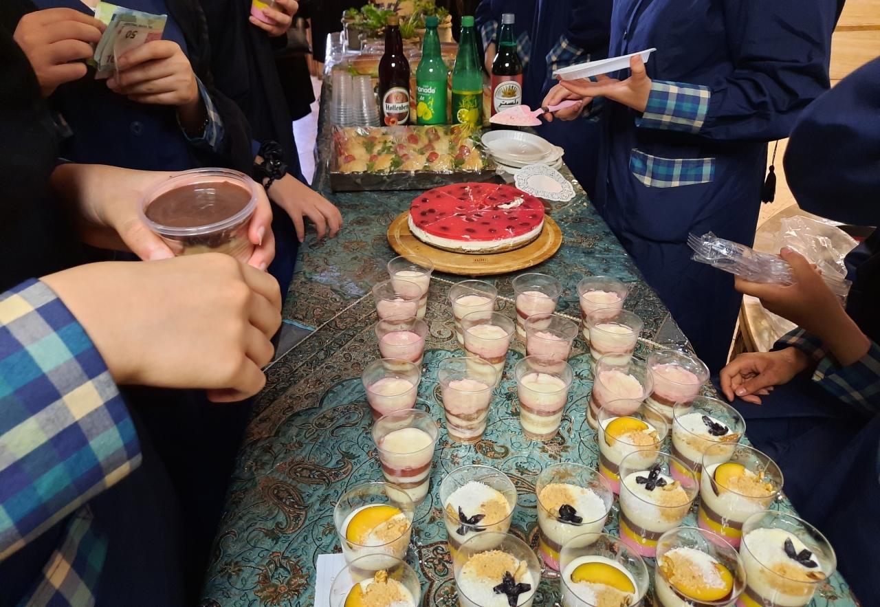 روز شنبه ۱۴ مرداد به مدد الهی و همراهی دختران پایه دهم بازارچه خیریه ای با انواع دسرها و خوراکیهای خوشمزه جهت کمک به نیازمندانی که در سفر جهادی کرمان شناسایی شده بودند برگزار کردیم . بدینوسیله و به پاس حضور گرم و صمیمی و همراهی شما و دختران عزیزمان مراتب تقدیر و تشکر خود را از شما عزیزان اعلام می داریم، حضور و همراهی گرم و صمیمی دانش آموزان را در خلق این روز ماندگار ارج نهاده و از خداوند متعال روز هائی سرشار از مهر ، دوستی ، شادمانی و شادکامی را خواهانیم.