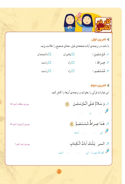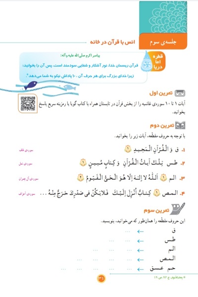 برای آسان تر خواندن قرآن صفحات درس را برایتان در همین صفحه بار گزاری میکنم تا از روی آن بخوانید 🌹و کل درس را مرور کنید 🍀