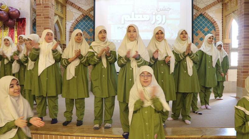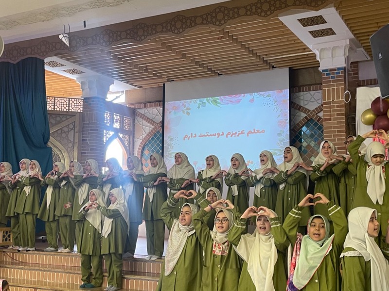 روز ۱۲ اردیبهشت که مصادف هست با روز معلم دخترانمان در سالن اجتماعات دبستان گردهم آمدند و معلمین و مربیان دبستان با تشویق های بی وقفه دخترانمان وارد سالن اجتماعات شدند.