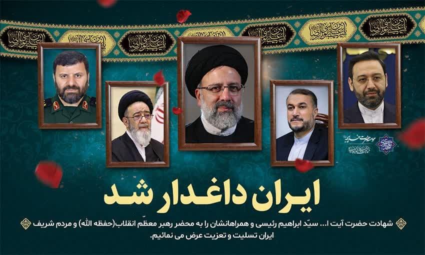 شهادت رئيسجمهور خدمتگزار و مردمی ، حضرت آیت الله رئيسي و همراهان را به محضر نورانی حضرت ولیعصر عجلاللهتعالیفرجه الشریف و ولی امر مسلمین ، حضرت ایتاللهالعظمی خامنهای و هیئت محترم دولت و ملت شهیدپرور ایران، تسلیت و تعزیت عرض میکنیم.