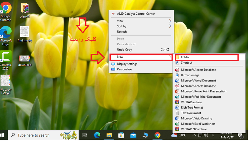 1-خب دخترای گلم ازتون میخوام ، روی صفحه دسکتاپ کامپیوتر منزلتون ، یک پوشه بسازید